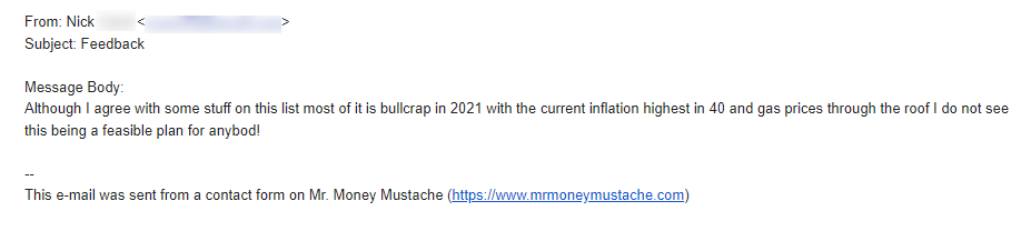 Living a Mustachian lifestyle is the essence of this and allows us to create an economic buffer zone for our lives. Inflation hurts us when we live on the edge of not being able to afford our lifestyle already.
